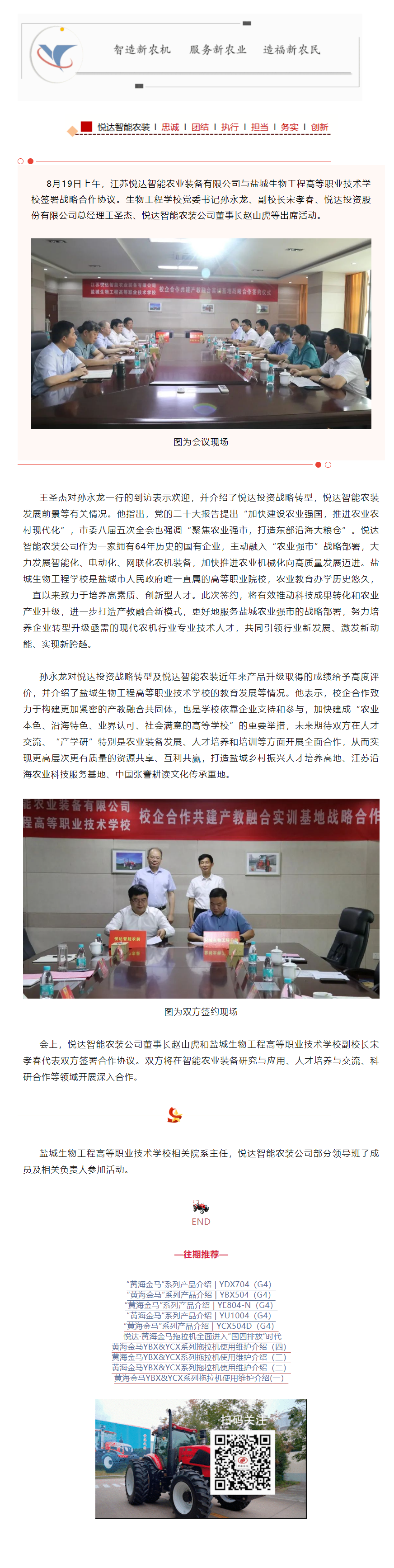 悦达智能农装公司与盐城生物工程高等职业技术学校签署战略合作协议